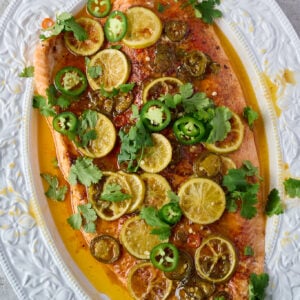 Here is everything you need to make this zesty, spicy and buttery hot honey slow roasted salmon.
