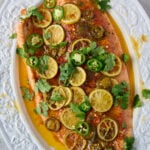 Large salmon fillet – Skinless is easiest, but if yours has skin, pour boiling water over the skin to help it contract so the skin peels off cleanly. It will slide right off!